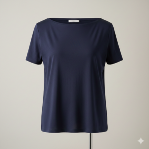 Camiseta de cuello barco con un diseño elegante y femenino. Su corte favorecedor y su estilo refinado la convierten en una prenda ideal para looks cuidados y actuales.