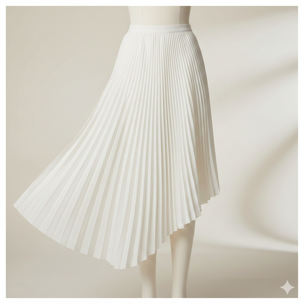 Falda plisada asimétrica de diseño moderno y elegante. Su corte original aporta personalidad y sofisticación a cualquier conjunto.