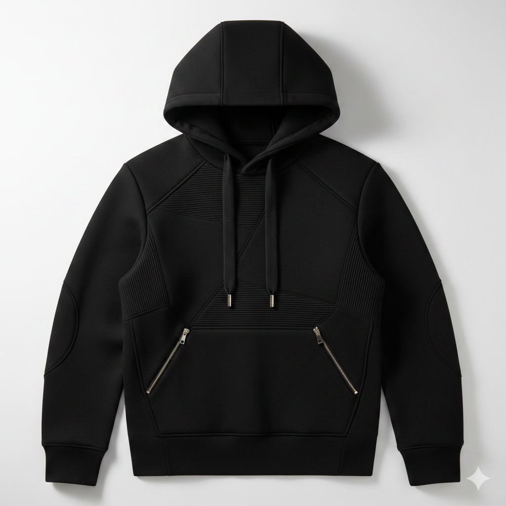 Sudadera con capucha de diseño estructurado y elegante, pensada para un look urbano refinado. Su confección de calidad y su estética moderna aportan estilo y comodidad.